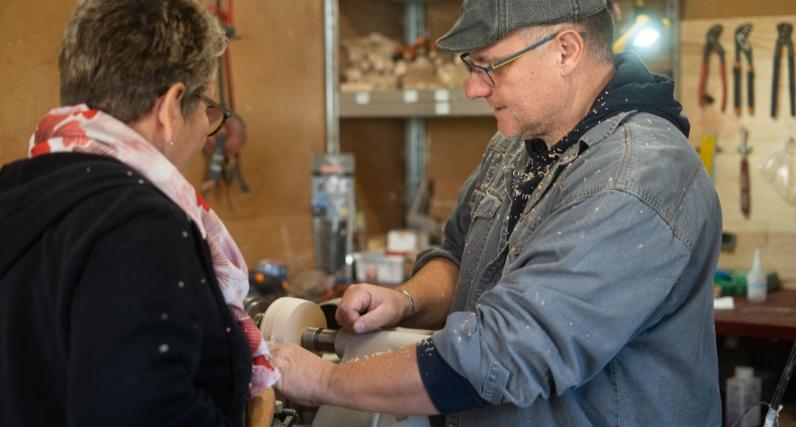 Prenez place derrière le tour à bois pour donner vie à votre création ! Vous bénéficierez d'un accompagnement personnalisé par l'artisan passionné, qui vous guidera à chaque étape du processus.
